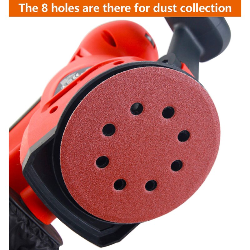 - Hook and loop backing, this would work with any sander that is 5 inch with 8 holes.