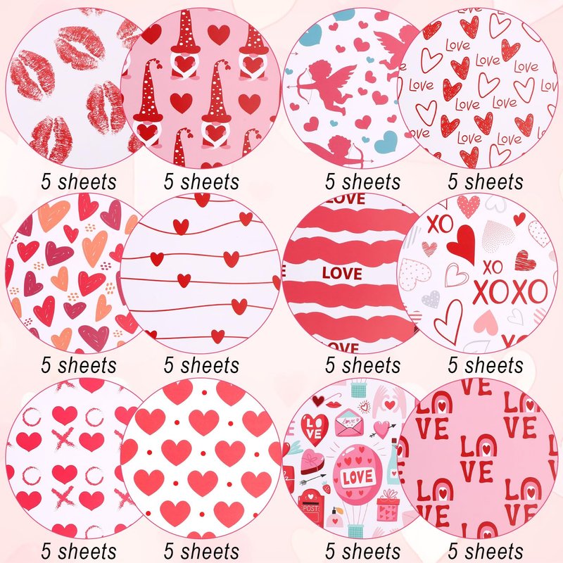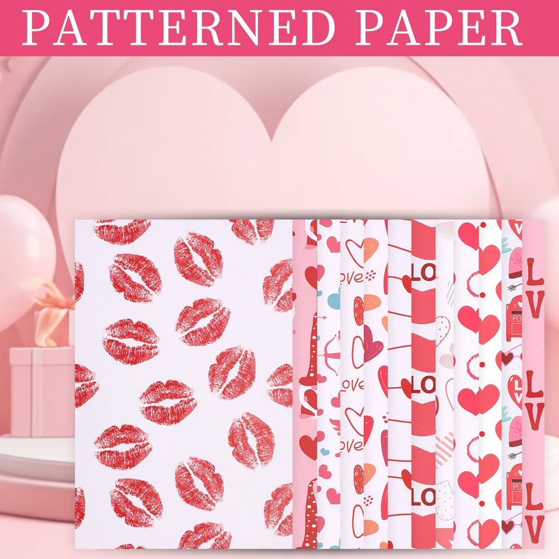 - Cute Design: Our pattern papers include red, pink, white and blue. And there are printed with Valentine's Day themed elements, such as hearts, stripes, letters XOXO etc. They are so sweet and romantic that can greatly express your love. And they are also perfect decorations.