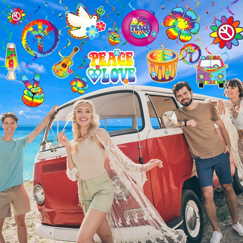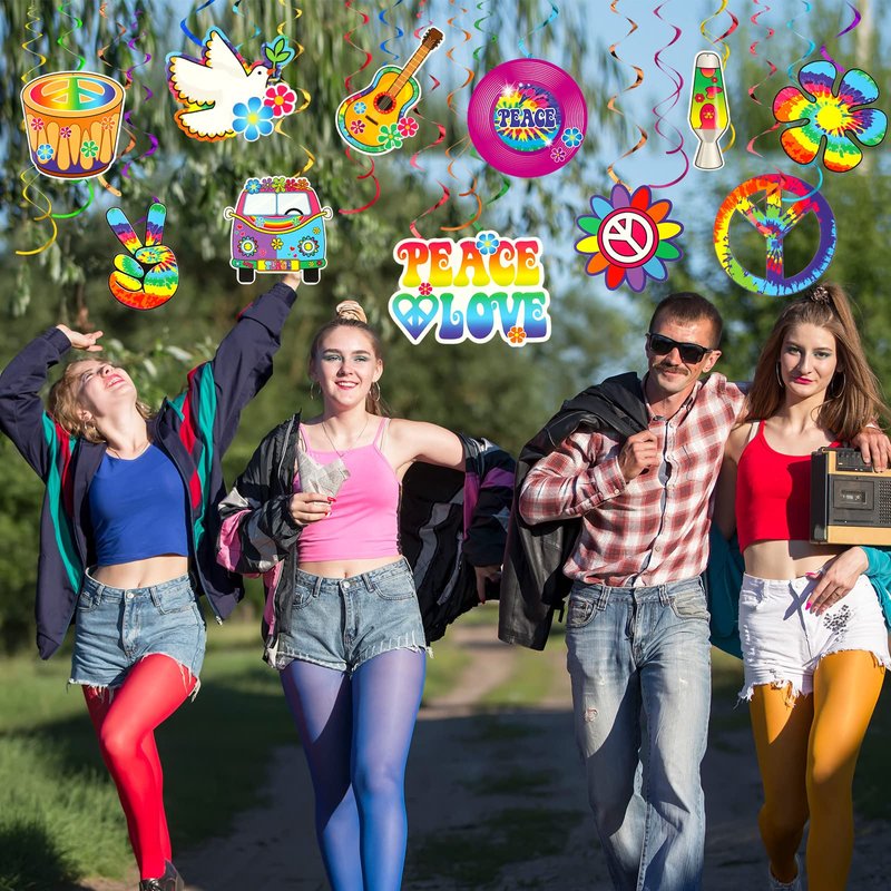 - Durable material: made of metallic foil and quality card stock, not fragile and not easy to bend, double-sided printed; These hippie theme party hanging swirls are durable enough to be applied many times on different occasions; Team them up with other 60’s theme party decorations and enjoy the blast from the past