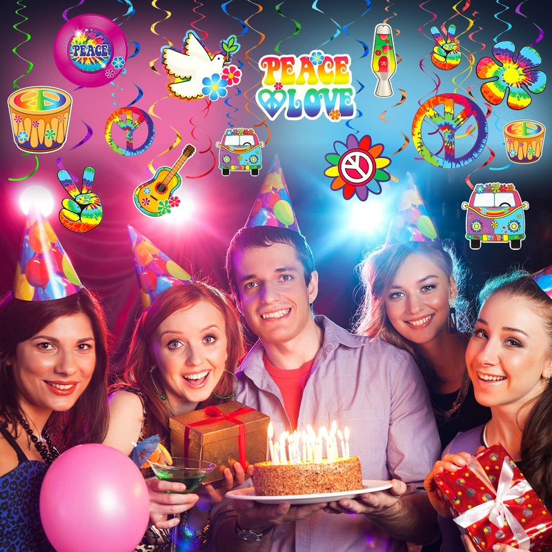 - Wide application: this 60s hippie theme party foil swirl decorations are ideal for hippie theme party groovy birthday party, etc.; You can use it as a party centerpiece, or as a photo, the backdrop to mix other birthday party accessories, which add a special touch to your party