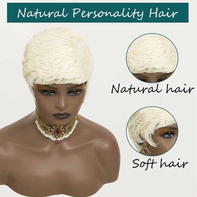 - [Blonde Pixie Wig]; Experience an instant transformation of your look and hairstyle with our synthetic pixie cut wig. It's a versatile piece that seamlessly transitions from casual to formal settings. Whether it's for everyday wear or a special event like a wedding, prom, anniversary, or date night, this wig adds a touch of glamour and elegance to your ensemble.