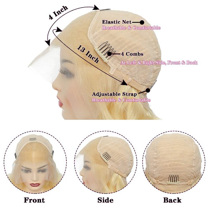 - 💝【Cap Size】:The Lace Area is 13x4 inches,Soft and Invisible.The Cap Size is Average 22.5 inches.There are 4 Combs Around The Cap Keep The Wig Firmly on Your Head,Also 2 Adjustable Straps with Hook at The Back of The Cap,You can Adjust it for a Suitable Position so That You Can Wear The Lace Front Human Hair Wig for a Whole Day Without any Uncomfortable.