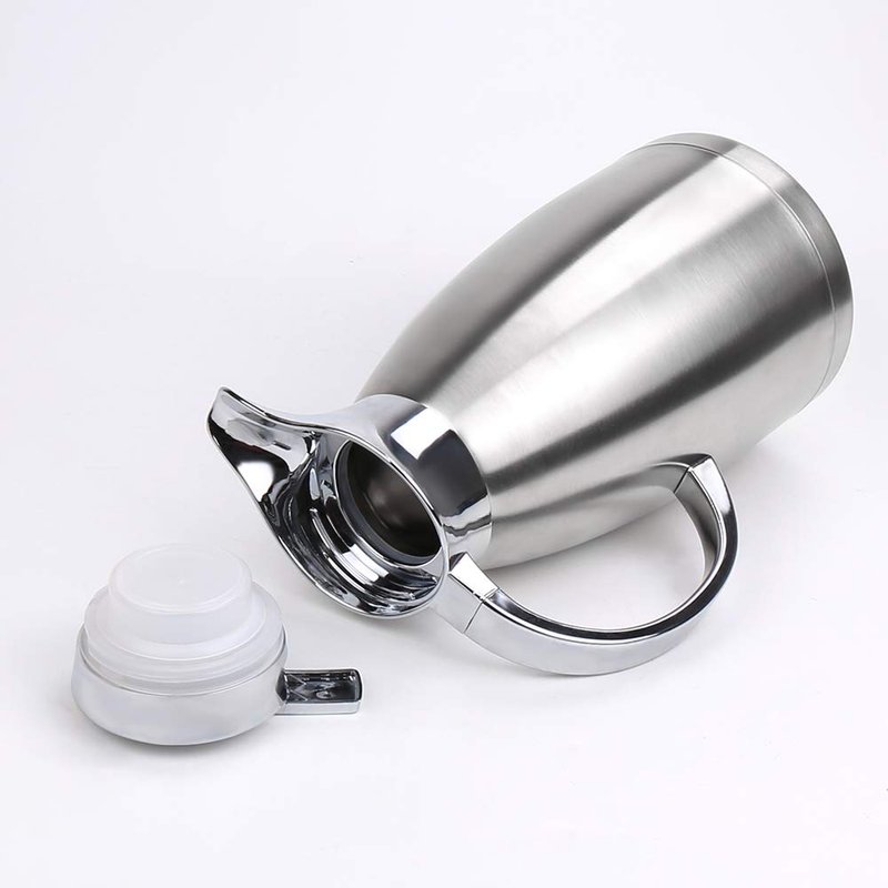 - ♚SINGLE HAND POURING, USER FRIENDLY: Pour spout opens easily when press the push button, making one-handed pouring of this thermal pot simple. It's safe to touch the coffee flask exterior body either it is a hot or cold beverage inside as the temperature is locked in and the carafe body stays cool.