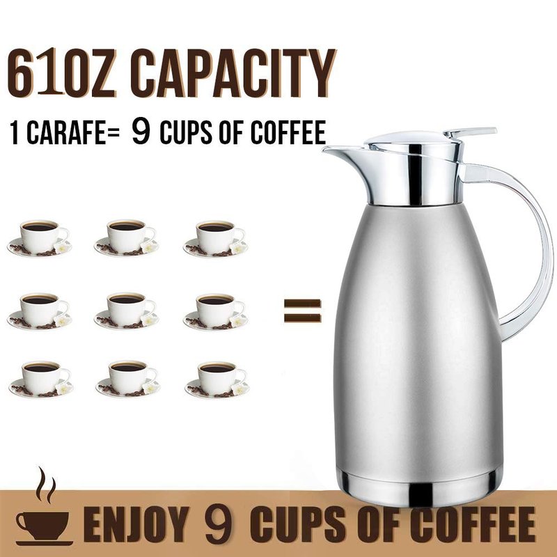 61oz Coffee Carafe Airpot Insulated Coffee Thermos Urn Stainless Steel Vacuum Thermal Pot Flask for Coffee, Hot Water, Tea, Hot Beverage - Keep 12 Hours Hot, 24 Hours Cold