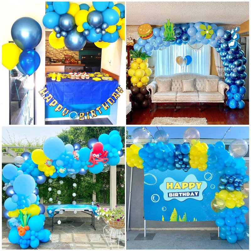 - Easy to Use: It comes with ribbons and glue dots, making the blue and yellow balloon kit easy to assemble. Inflate the balloons to different sizes using a balloon pump, then secure them together with the ribbons to form balloon clusters. Hang the clusters on the party backdrop. For the best results, use the glue dots to attach 5-inch balloons to fill any spaces