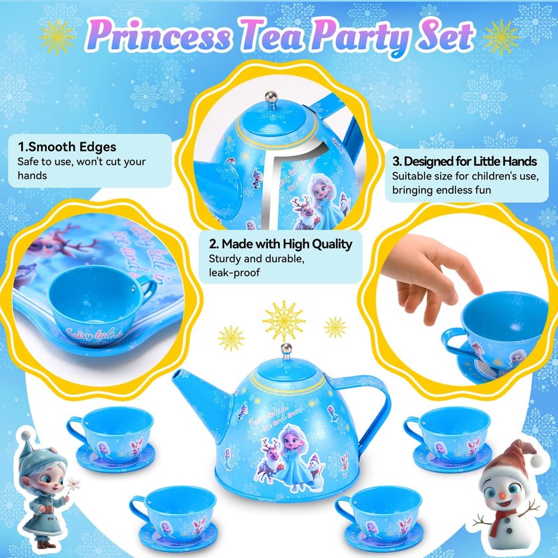 - Portable Tea Party Toys: This adorable blue portable storage box with a convenient handle lets your child take their favorite items anywhere. Perfect for storing girl toys, adding charm to room decor, or gifting for birthdays, this tea sets is designed with fairy tale in ice and snow, making it an ideal choice for children who love imaginative play