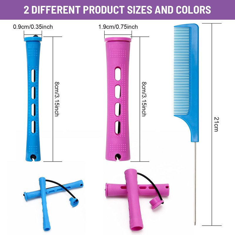 - 【Versatile】Total 60Pack long perm rods and 2 pieces steel rat tail comb, Two sizes hairdressing curlers for different hair lengths and types of hairs, you can make beautiful hairstyles by yourself