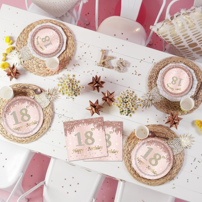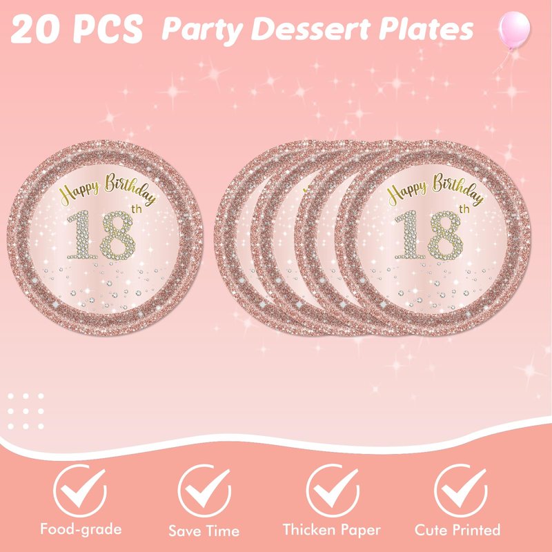 - 【Elegant and Classy Designs】This set features beautifully pink and rose gold combination. You will definitely surprise your guests with these elegant and classy designs in any occasions and formal events. Make the sweet 18 Birthday Party Rock !