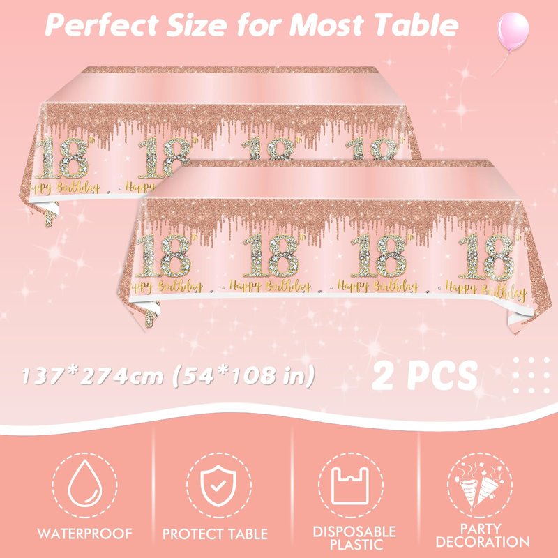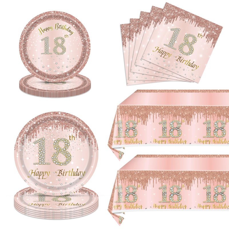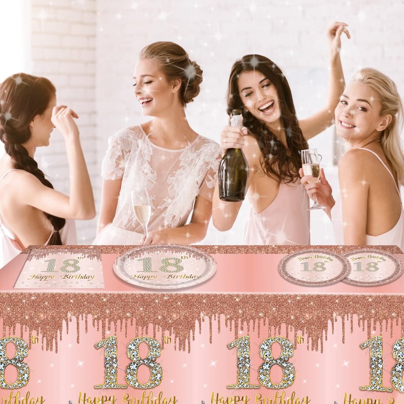 - 【Widely Use】The rose gold birthday plates, napkins and tablecloth sets are elegant and beautiful, perfect as party backdrop or photo props, pool party, men and women anniversary decor. The best gift for women and girls, family, friends, or yourself. This gorgeous rose gold 18th birthday gifts for girls will make a special and memorable party that you and your guests will never forget! NO-RISK