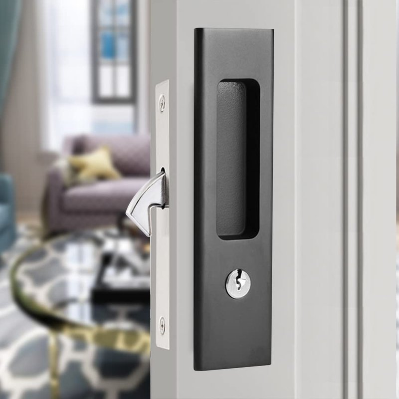 - 【APPLICATION SCENARIOS】Pocket sliding door lock has a button design and is thickened and reinforced. The scene is widely used, can be used for bathroom doors, barn sliding doors, cabinets, wardrobes, kitchen doors, closet doors, etc. and has a pocket door lock with a key, which can better ensure privacy needs