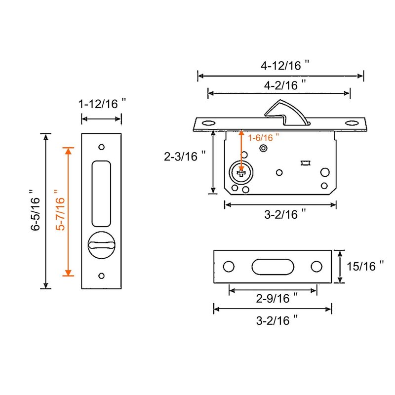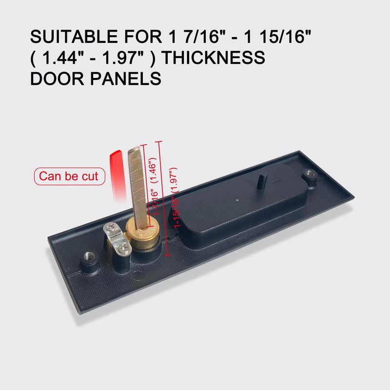 - 【SUITABLE FOR LEFT AND RIGHT DOORS】Pocket door lock length: 6-5/16", width: 1-3/4". Lock body length: 3-1/8", width: 2-1/4".Suitable for 1-7/16" ~ 1-15/16" thickness door panels. Sliding door lock suit well for most US standard door, and both fit left & right handed doors.