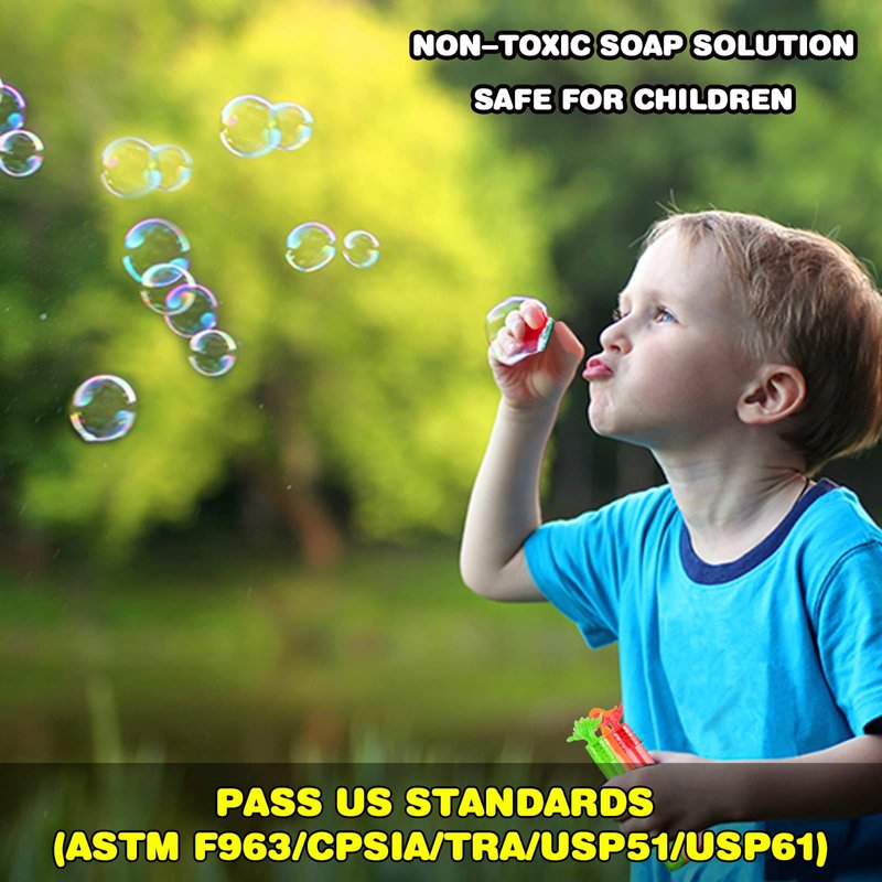 - Easy to use: Each small bubble wand measures 4” tall with no leakage lid. They are lightweight and easy to carry around, children can easily blow or wave colored bubbles in the sun.