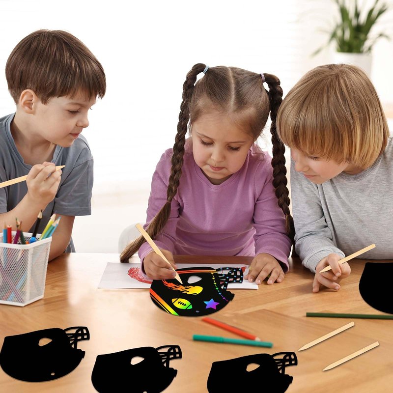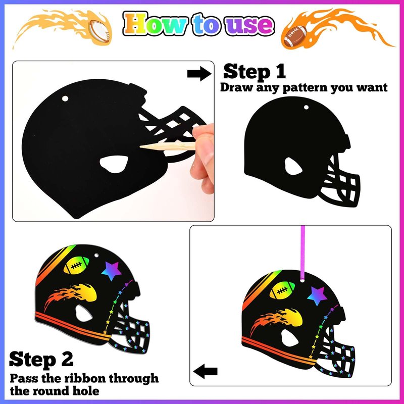 - Football Theme: Our scratch cards are styled with football helmets. You can scratch the surface of the football scratch cards, draw some football related patterns to reveal the rainbow colors, and fully demonstrate your love for football!