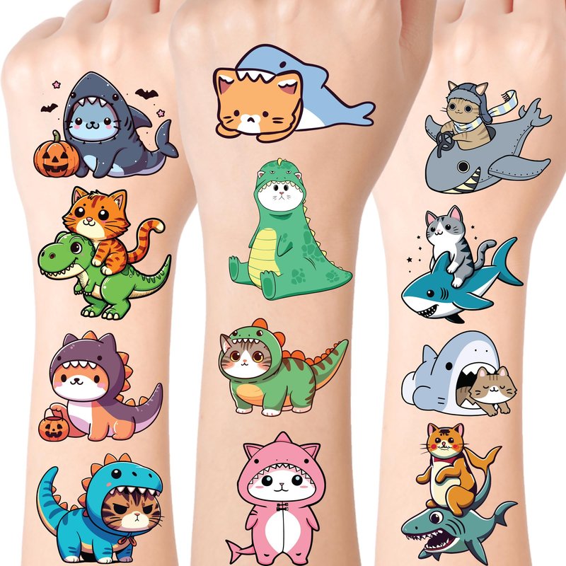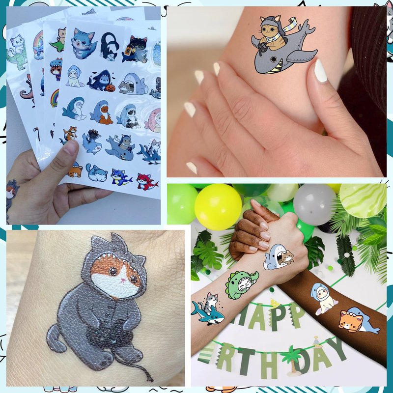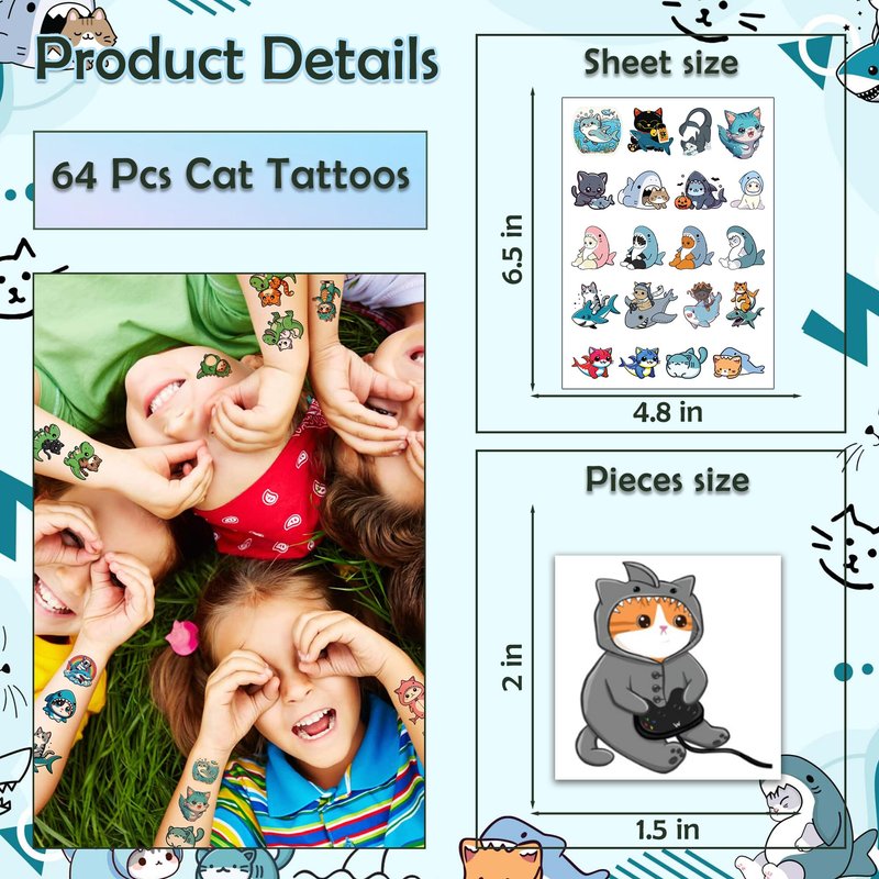 64 PCS Shark Temporary Tattoos for Party Supplies, Cat Tattoo Stickers for Birthday Parties, Dinosaur Tattoos Party Favor, Waterproof Birthday Tattoos. (Shark Dinosaur)