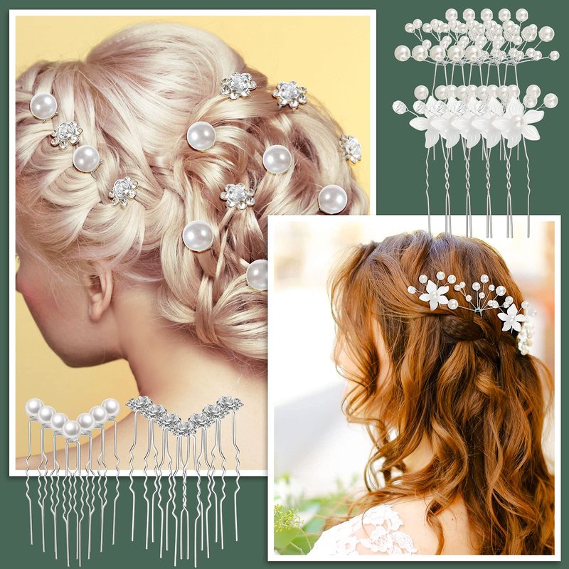 - Practical combination: you will receive 64 pieces of wedding hair comb sets overall, including 20 pieces of flower rhinestone hair sticks, 20 pieces of pearl hair pins, 3 pieces of crystal pearl combs, 1 piece of pearl wedding hair vine, 20 pieces of U shaped pearl hair clips with 2 different styles; The large amount of quantities can meet your daily needs for hair styling