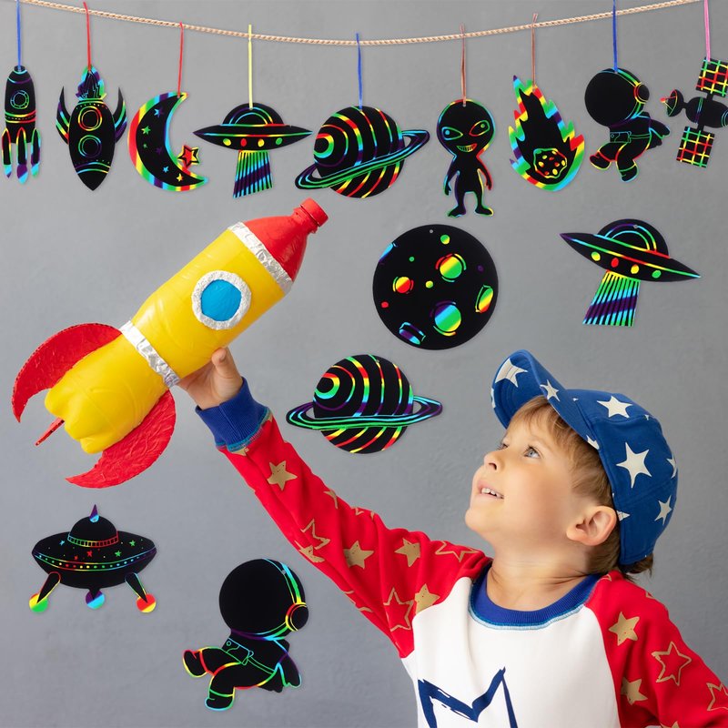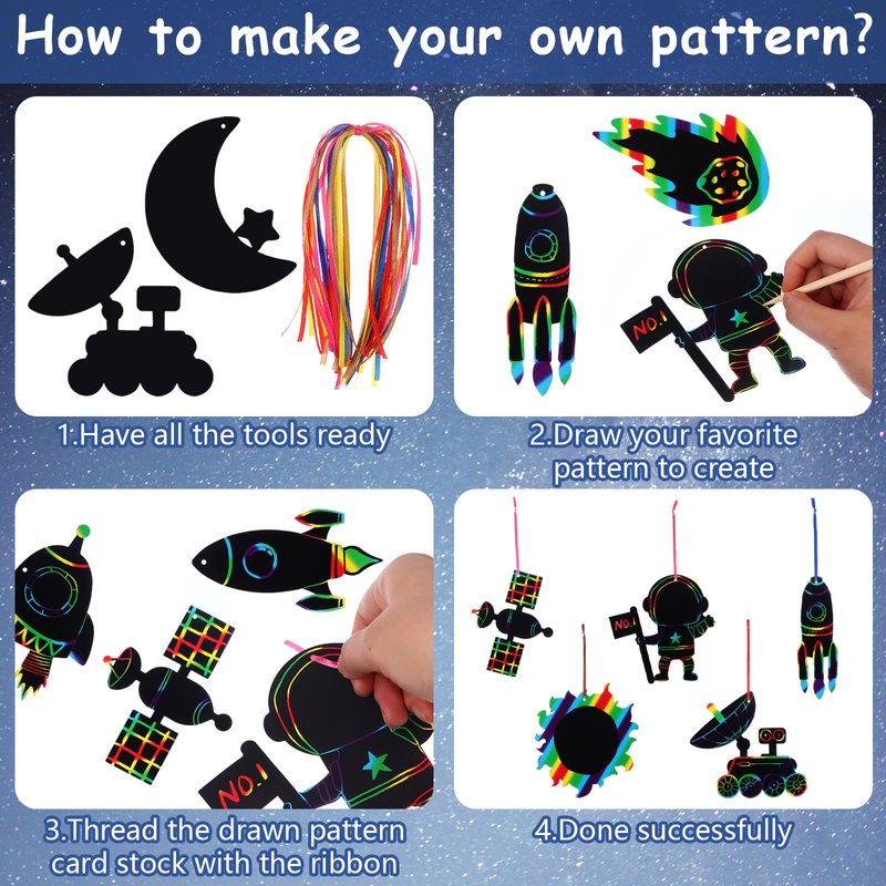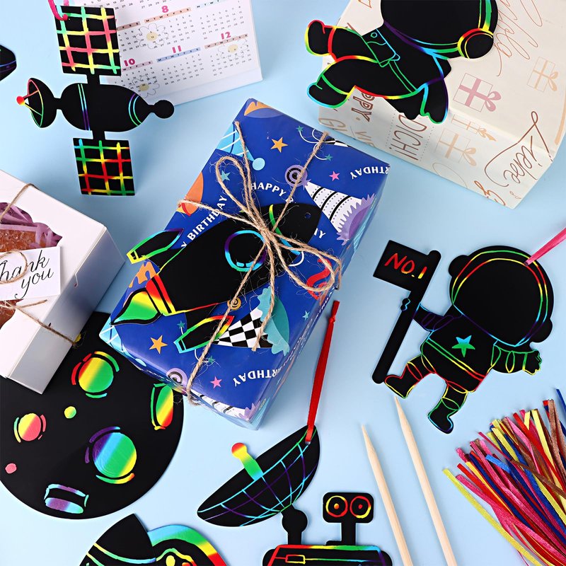 - Wide applications: The DIY scratch cards space party favors are suitable for creative, fun activities, and craft projects, the intricate illustrations can spark imagination and curiosity, special space themed scratch cards can be used as a classroom reward, holiday party, Christmas gifts, parent-child interactive activities, and home decor etc. It can also be used as a gift tag to hang on a bag, keys or hang on a gift bag.