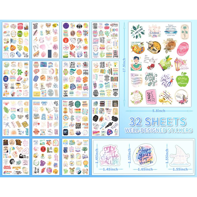 - 🌞Inspirational sticker pack consists of 32 sheets well-designed stickers and contains inspiring quotes.A total of 640 positive stickers have different unique patterns.Our stickers are designed to encourage you to become a better yourself, remain optimistic, and be full of vitality and motivation for life.