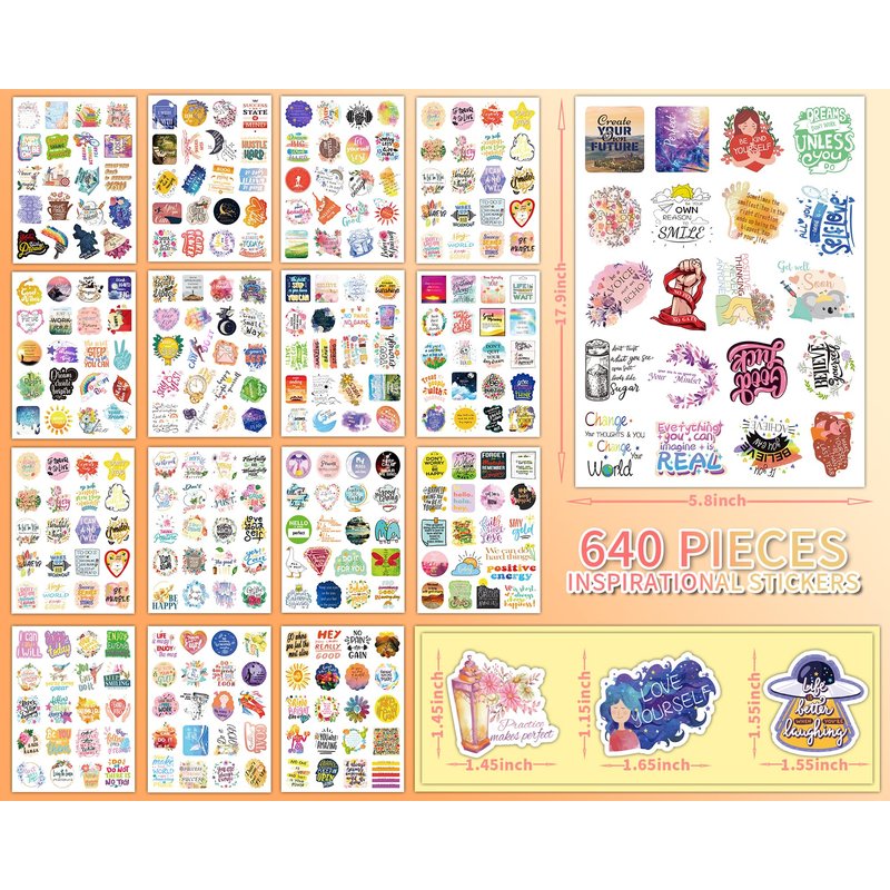 Quantity: 640pcs inspirational stickers for adults teens kids planners.