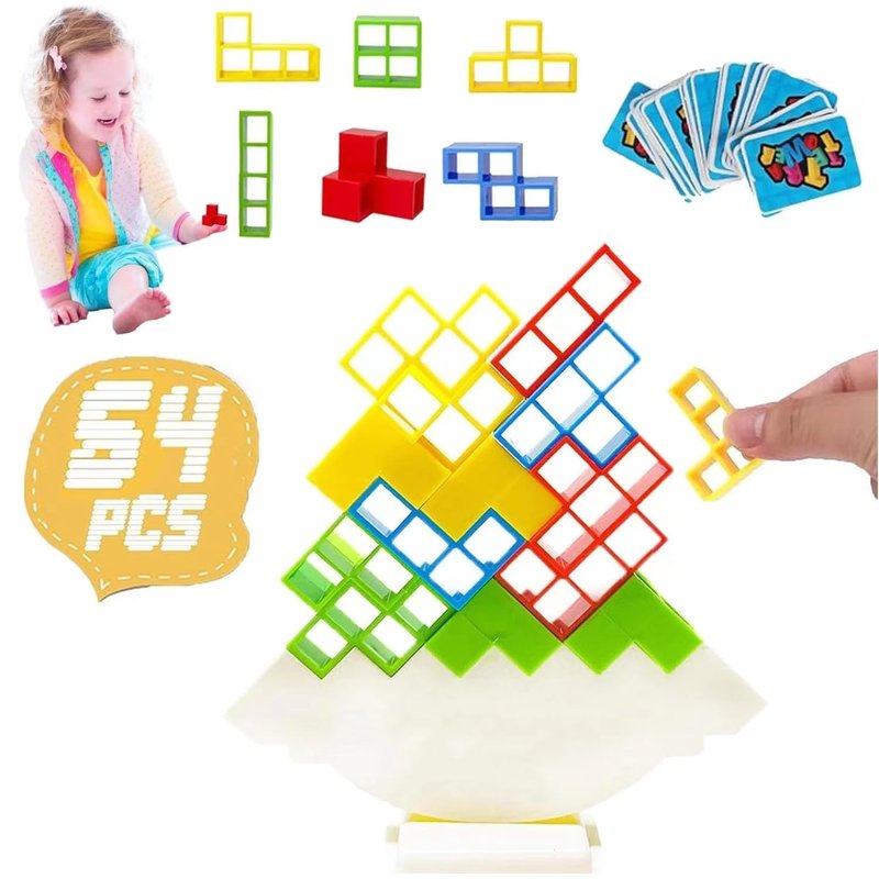64pcs Tower Game Balance Stacking Blocks, Tower Balancing Stacking Board Games Building Blocks Puzzle Toy, Family Games Birthday for Kids Adults