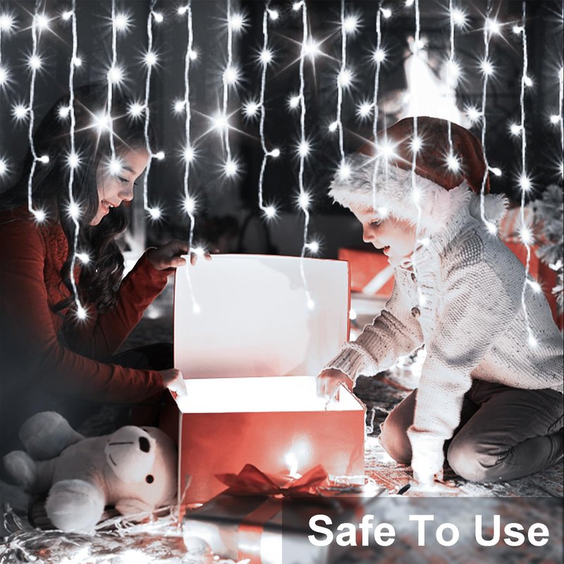 - Waterproof & Safe Use: Our outdoor Christmas lights are IP44 waterproof, which is very great for outdoor decor and can work normally even in cold winter. Please keep the plug away from the water. The output voltage of light strings is 29V, it will not overheat after a long time use, and it can be touched safely.