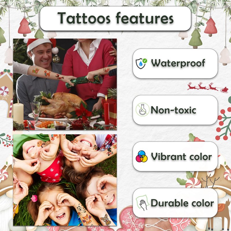 - [Quality and Quanity] These 4 sheets of Christmas and Halloween temporary tattoos have some amazing designs that make use of cutting-edge printing methods and premium plant inks to produce temporary tattoos that look realistic, improving the product's overall appeal and aesthetics.