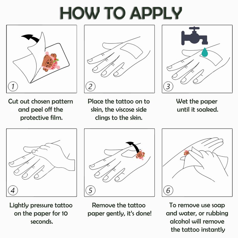 - [Features] Due to the eco-friendly, non-toxic components used in their creation, these tattoos are guaranteed to be skin-safe, long-lasting, and waterproof.