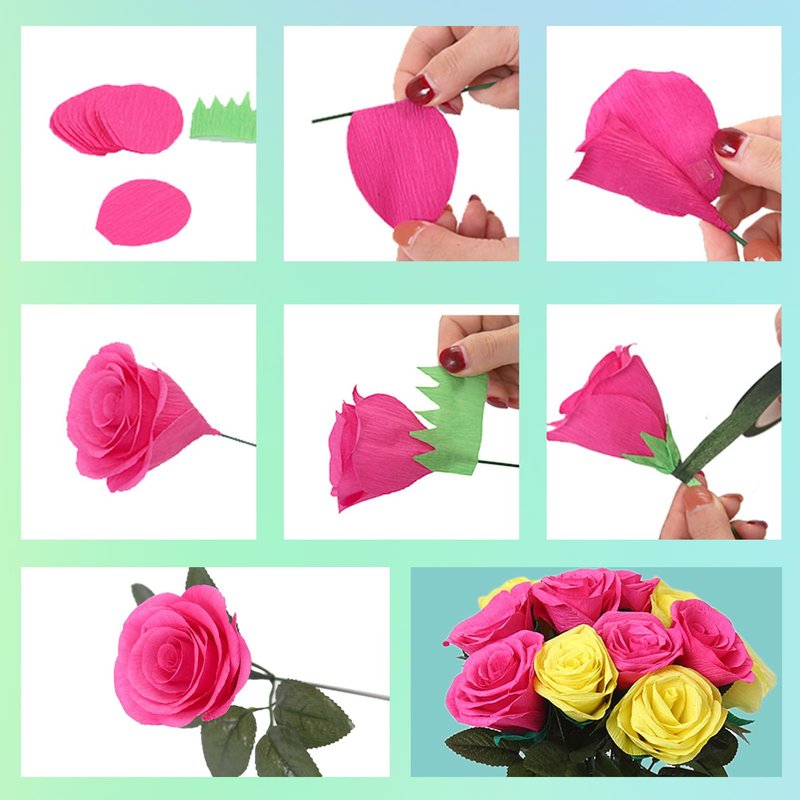 - 【Value package】you will get 14 rolls colored crepe paper rolls in 14 different colors, 50pcs green floral iron wires and 1 roll green tape. enough quantity for your DIY needs