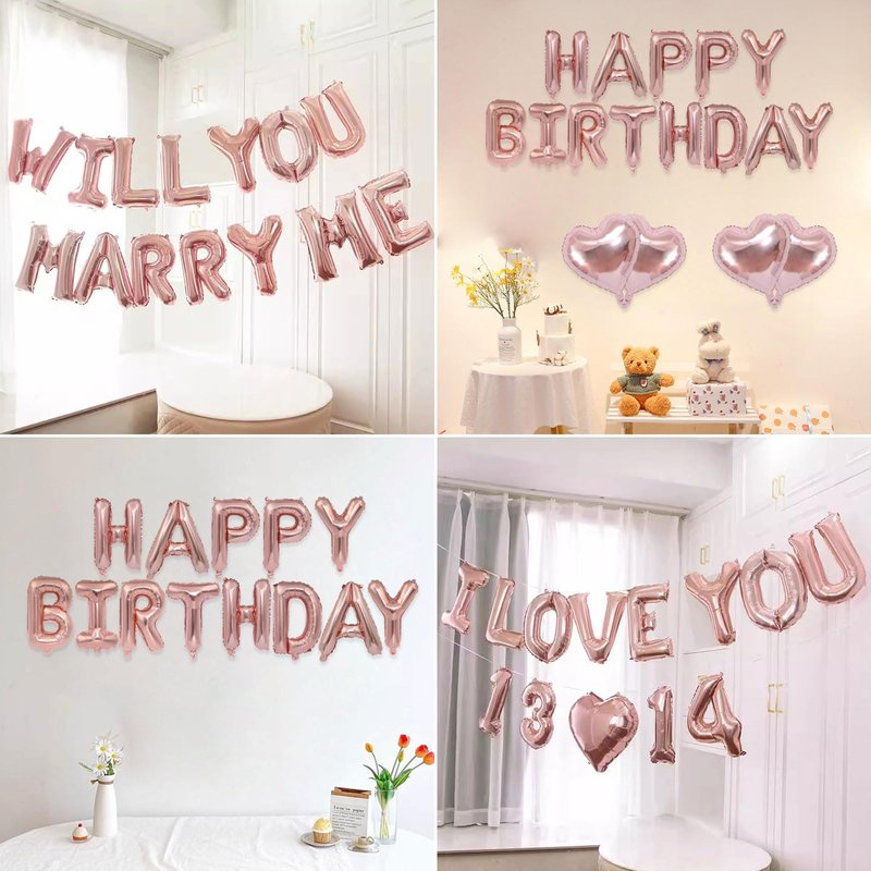 - GREAT PACK AS FOIL LETTER BANNER PARTY DECORATIONS: Package comes with 52 pcs Rose Gold letter balloons. The size for each letter balloon is 16inch, small Rose Gold balloons, perfect for your themed party decorations.