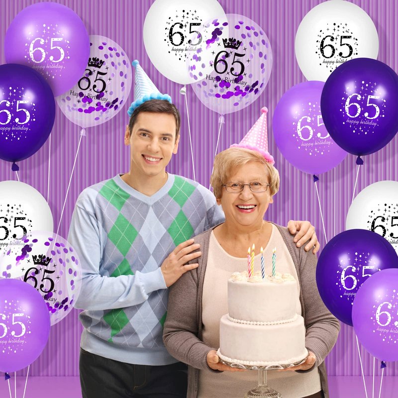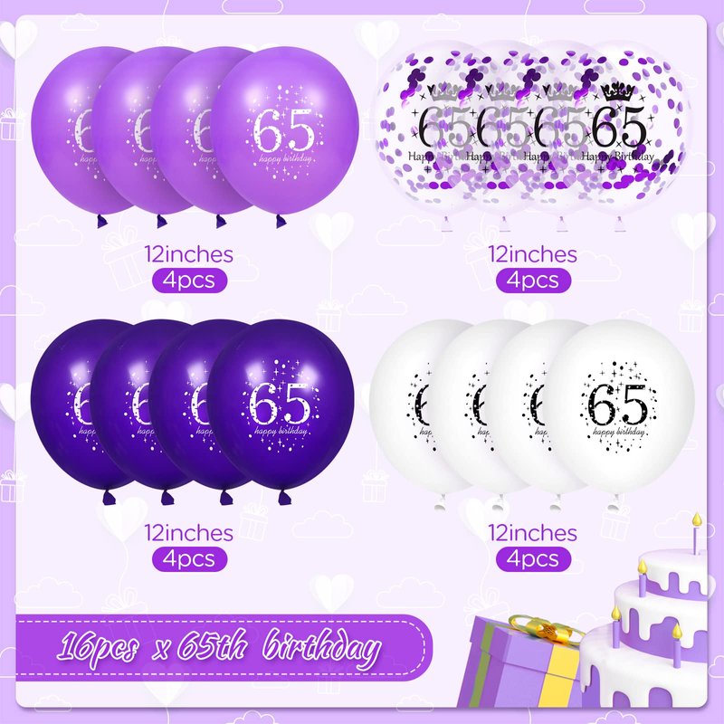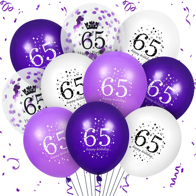 65th Purple Birthday Balloons Decorations, 16PCS Purple White Happy 65th Birthday Confetti Latex Balloons for Women Men 65th Birthday Party Wedding Anniversary Indoor Outdoor Party Supplies,12 Inch
