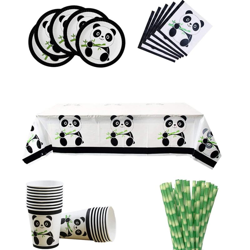 - Disposable Panda Tableware Set are made from high-quality, non-toxic and safe biodegradable paper.Great for desserts, party food and beverages.