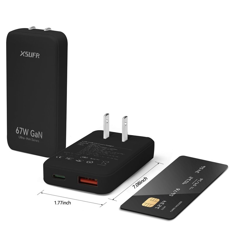 67W GaN Ultra-Thin Series USB-C PD Fast Charger, Compact and Portable, Compatible with MacBook, iPad, iPhone, Samsung, and More (Black)