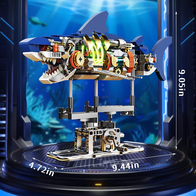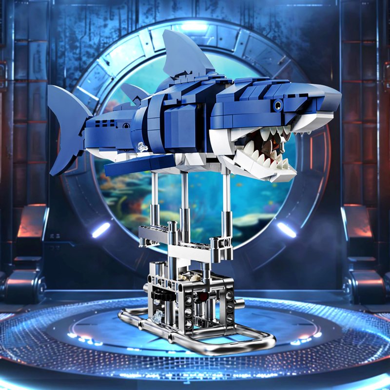 - Cool Gift For Collection And Play: There are 687 pieces of this shark building block toy, splicing multiple pieces can exercise children's concentration ability, and the metal bracket base can be placed in the room or bookshelf or desktop as home decor
