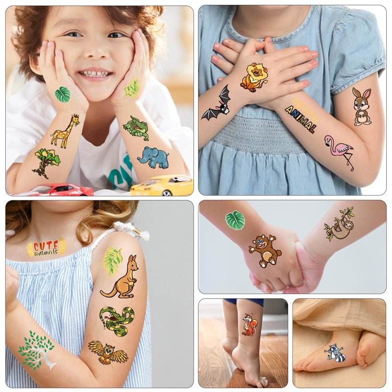- 【Long Lasting&Waterproof Tattoo Stickers 】Our tiny fake tattoos for kids are made with FDA-compliant materials that are waterproof, non-toxic, and non-allergic. They can last for 3-5 days on your body, so you don't have to worry about bathing, swimming, sweating, or getting wet! Perfect for party animal birthday decorations