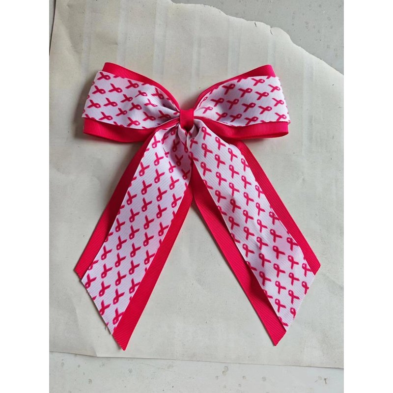 - Boutique Long Tail Breast Cancer Awareness Ribbon Cheer Bows- Well hand-made of classic boutique hot pink, white,pink ribbon grosgrain ribbons with study metal alligator clip, secure hold her hair well. Making your outfits more in line with the Breast Cancer Awareness Month holiday gift hair bows,being the shiniest one among the crowd!