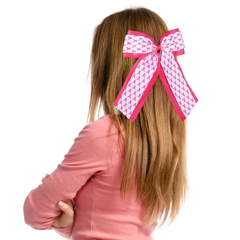- Pink Cancer Awareness Ribbon Cheer Hair Bows- Fashion big hot pink ribbon breast cancer awareness hairbows clips with long tail for women girls,special designed for the October breast cancer awareness month to show your awareness and support for fighting and battling breast cancer,make you stand out from the crowd of people.