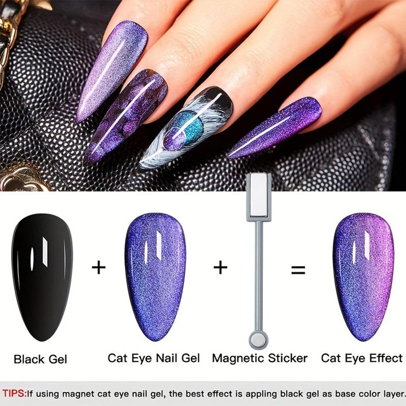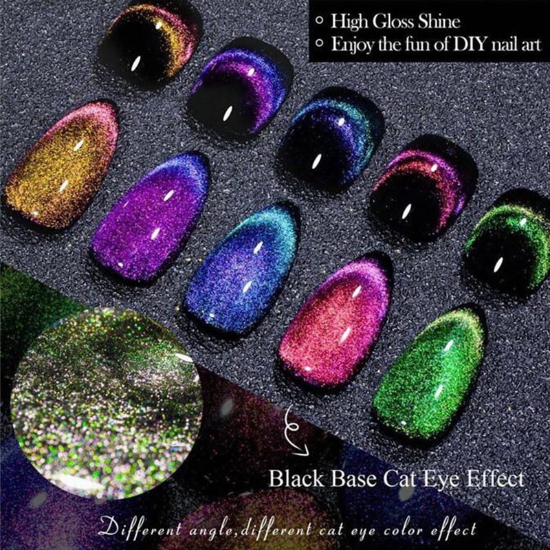 - ✨🌈【High Gloss Shine & Long Wearing】Our cat eye uv gel nail polish and black nail polish are all easy to apply. Resistant to chipping and cracking and highly pigmented bright color. With proper application, the gel cat eye nail polish could last for up to 3 weeks. This gel uv nail polish is good for daily nail art design.