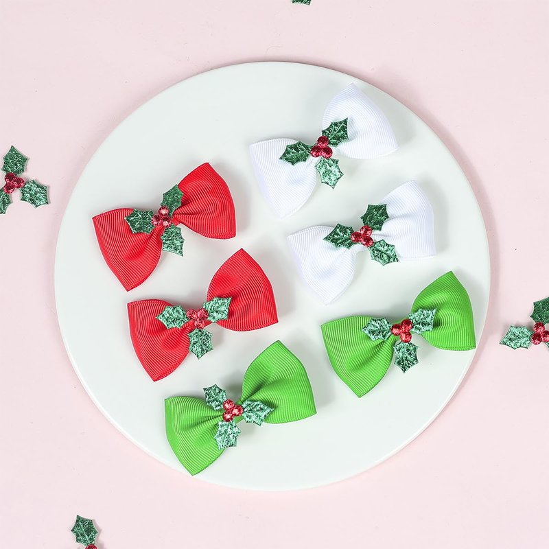 6PCS Christmas Hair Bows Clips for Kids Women Girls Christmas Cute Red Green White Bows Clips Hairgrips Small Knot Hair Accessories for Xmas Cosplay Costume Party Decorations