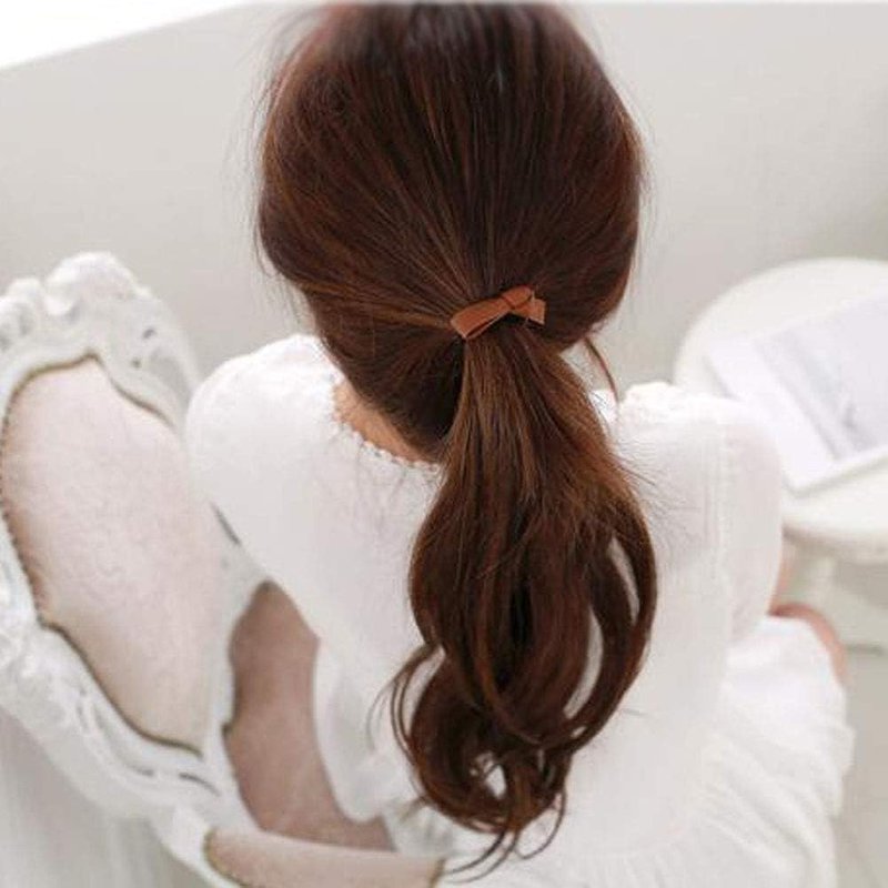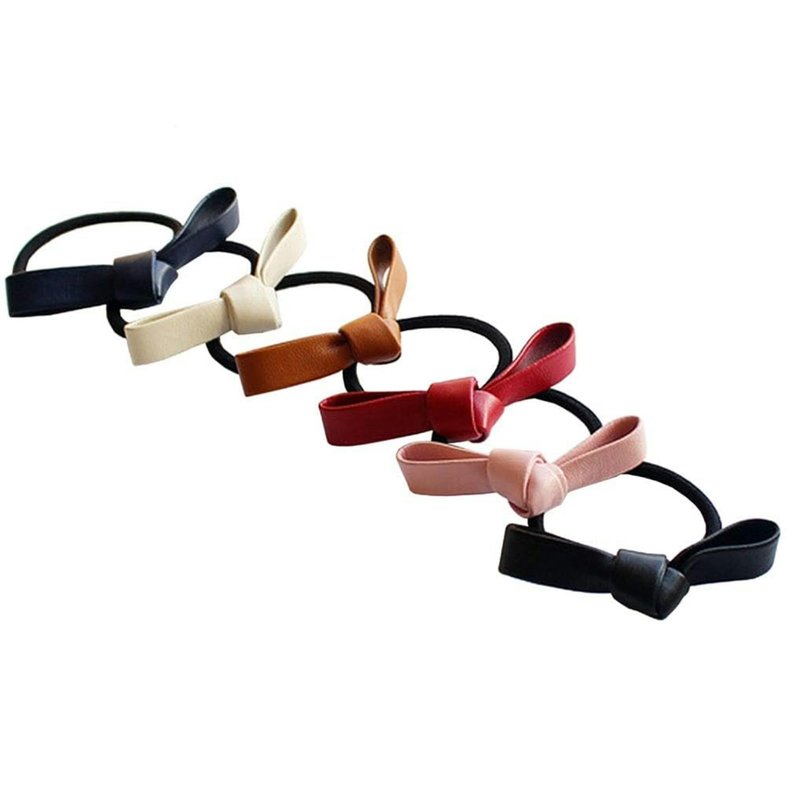 6Pcs Colorful Small Knotted Bow Hair Ties PU Leather Elastic Hair Bands Simple Hair Ropes Ponytail Holder Hair Elastics and Ties Hair Accessories, Bow Hair Ties