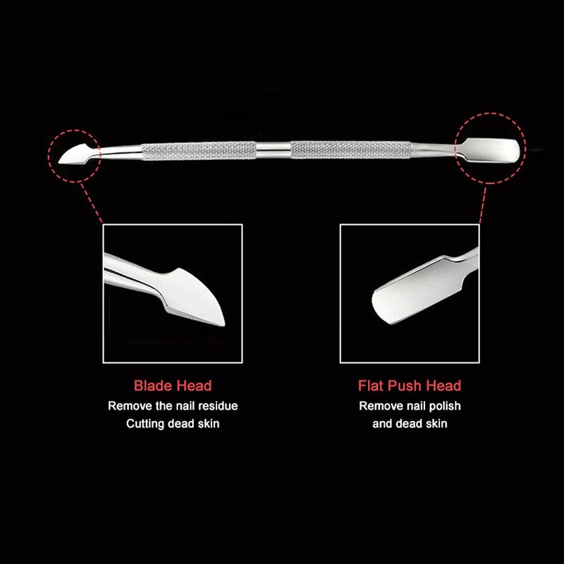 - Double-ended design, each tool has multiple functions. Useful tool set to push up cuticle around nails and residual nail polish, clean up dirt in nail crevices.