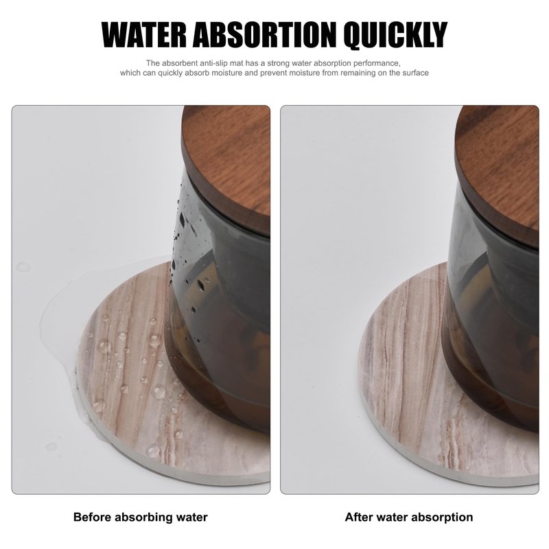 - 🍶【Super Absorbent】: Made of high quality water absorbent ceramic stone, It can absorb the water attached to the glass in a short time, as well as stains caused by coke and coffee. Keep the glass dry and the table clean at all times.