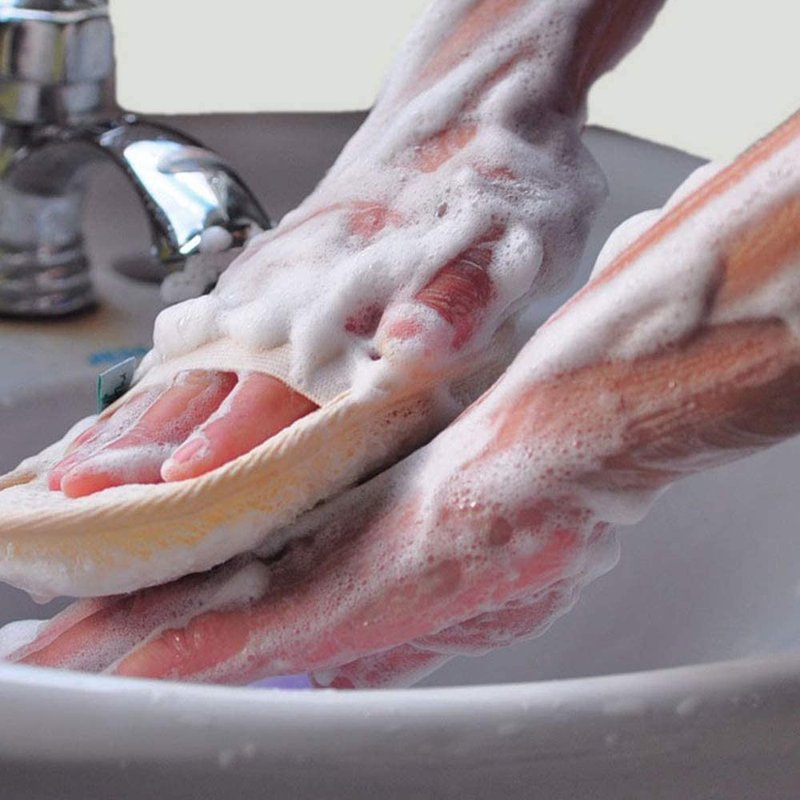 2. With elastic hand strap is fixed in your hand to prevent slipping away during the bath,it is convenient for you to dry after using