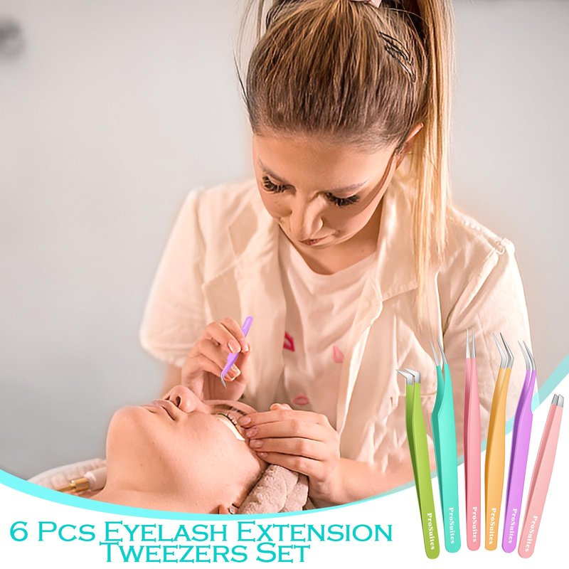Quantity: 6 pieces of eyelash extension tweezers, 6 eyelash application tools