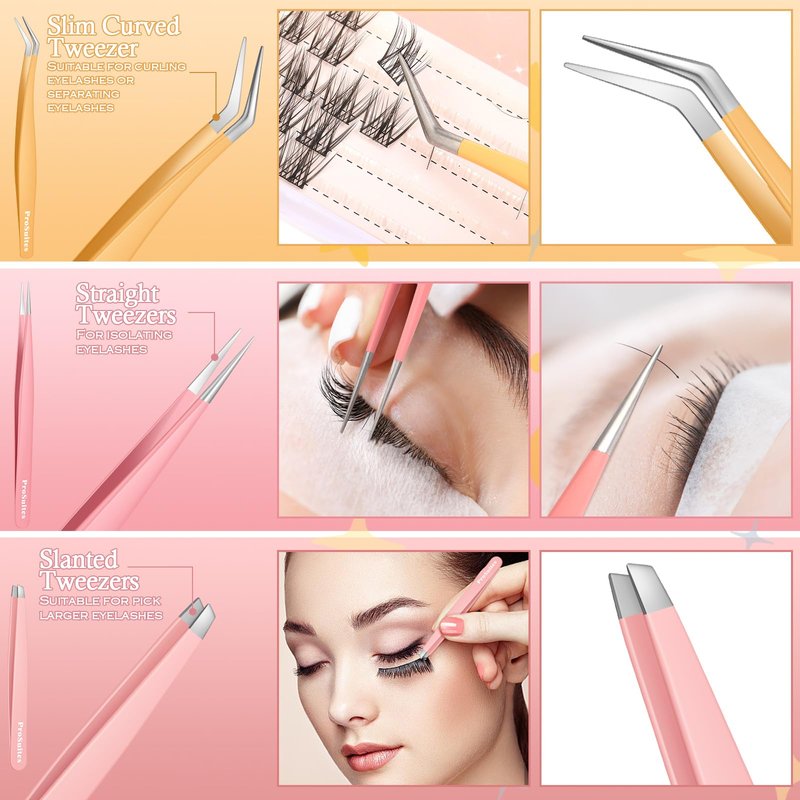 - Multiple uses: These lash tweezers are widely used and can be used to apply eyelashes, pluck excess single hairs from eyebrows, meet any eyelash needs, and can also be applied to various models, art, craft projects, and even for removing debris. Different shapes can meet many of the above uses.