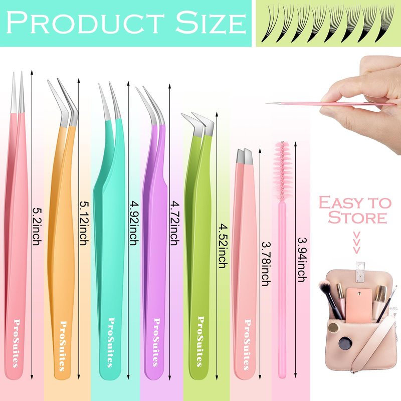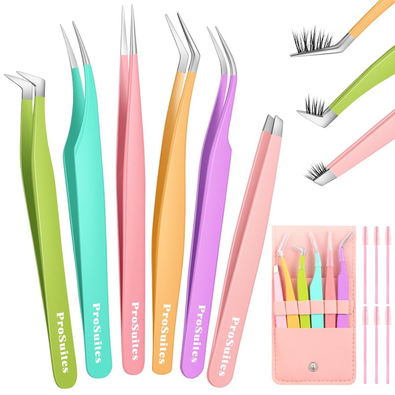 - Eyelash extension tweezers: The eyelash tweezers set contains 5 curved tweezers, 1 oblique tweezers (a universal and easy-to-use tweezers selected from user preference surveys), and a very complete range of pointed styles for us to choose from. It is very suitable for extending eyelashes and applying false eyelashes.