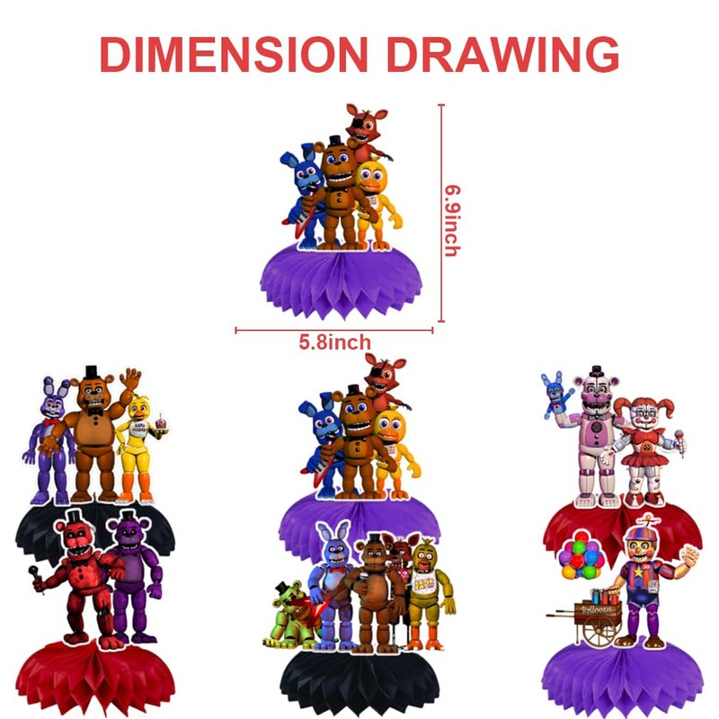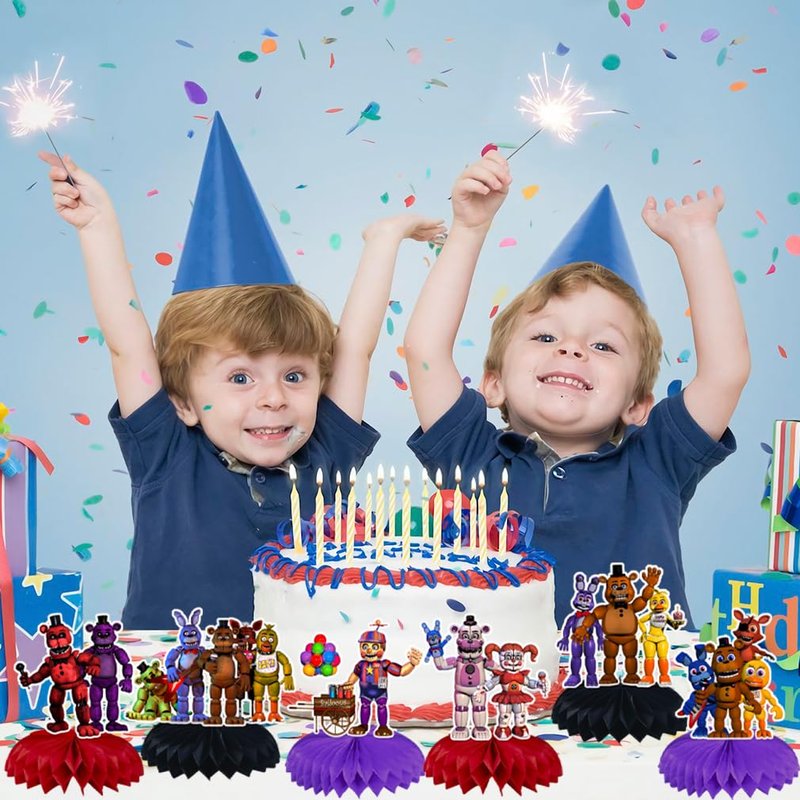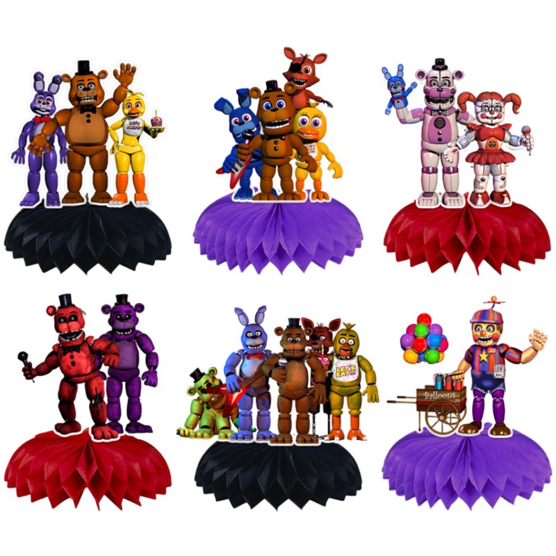 6Pcs Five Nights Party supplies set Five Nights Honeycomb Centerpieces Double Sided Table Topper card