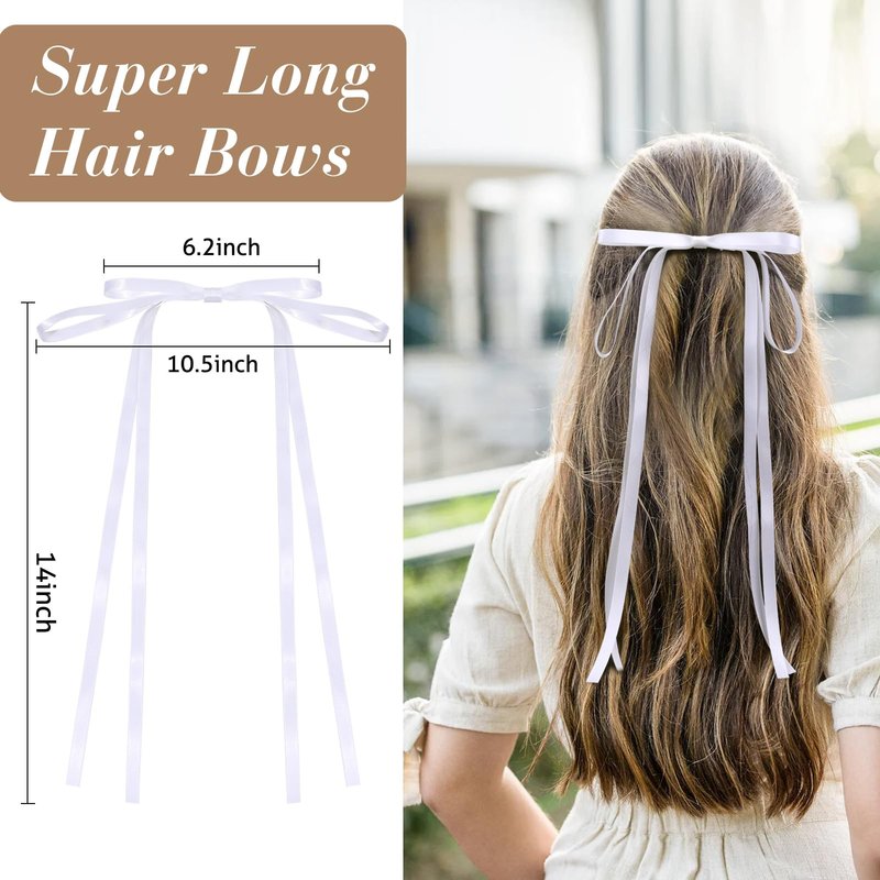 - π Super Long Tailπ Each girls bows is 14 inches long, and when the breeze blows, it looks even more floating. Each metal clip is 2 inches long and is easy to clip onto your hair for quick styling, saving time and not easily falling apart. They're comfortable to wear, you don't have to worry about losing your accessories, and you can keep your hairstyle all day long.