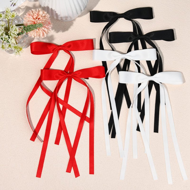 - SUPER CUTE HAIR BOWS-- 6pcs Black Red White Silky Satin hair bows with different colors to match any of your outfit. These handmade hair bows for women girls suitable for all seasons.