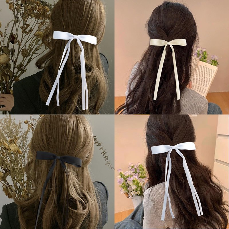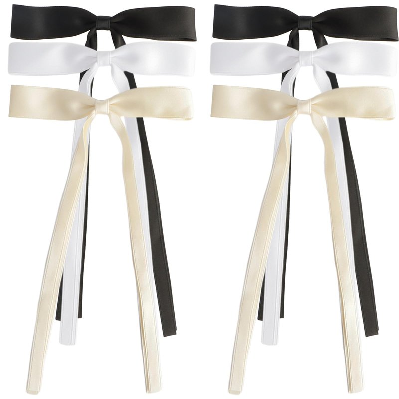 6PCS Hair Ribbons for Women Girls Hair Bows for Thick Thin Hair Tassel Ribbon Bowknot Duckbill Hair Clips Coquette Cute Hair Accessories Teen Girl Trendy Stuff