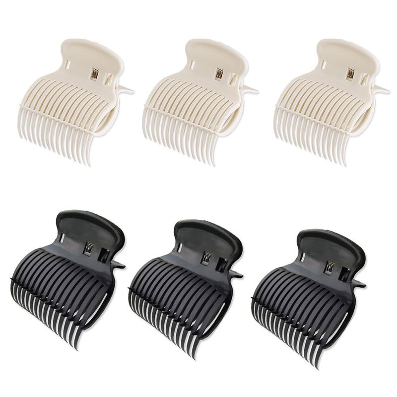 6Pcs Hot Roller Clips PlasticHair Curler Claw Clips Replacement Roller Clips for Women Girls Hair Section Styling (Black or White Color Random)