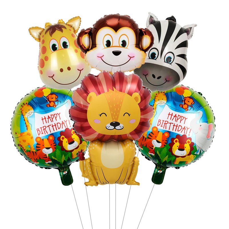 6Pcs Jungle Animal balloons Set, Jungle Safari Birthday Party Decorations for Boy Kids Safari Jungle Baby Shower Wild Birthday Zoo Party Decorations